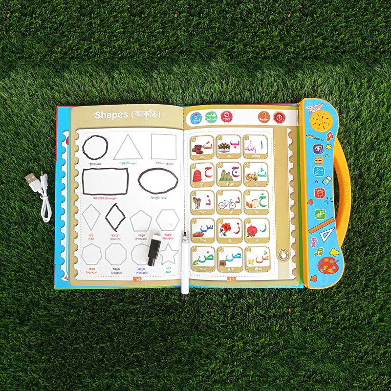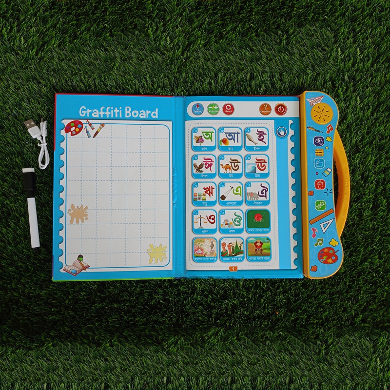 বাচ্চাদের জন্য এই ইন্টেলিজেন্ট লার্নিং টকিং বুকটিতে শিশুদের বর্ণমালা এবং বানান শিখতে সাহায্য করার জন্য একাধিক মোড রয়েছে। বাচ্চাদের জন্য ইলেকট্রনিক সাউন্ড স্টাডি বুক প্রতিটি পৃষ্ঠায় বোতাম রয়েছে পৃষ্ঠাটি শুরু করার জন্য প্রথমে সুইচ টিপুন। বাচ্চাদের জন্য স্মার্ট টকিং বুক যখন একটি শিশু বইয়ের ছবিটি টিপে, বর্ণমালার শব্দ, শব্দ এবং বানান বাজানো হয়